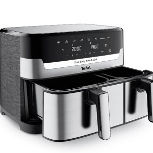 Nồi chiên không dầu Tefal Dual Easy Fry & Grill EY905D10 sử dụng công nghệ Extra-Crisp mới giúp món ăn giòn vàng với ít hoặc không cần dầu, đảm bảo sức khỏe cho cả gia đình. Màn hình cảm ứng hiển thị rõ ang và thao tác dễ dàng chỉ bằng một lần chạm, mang đến sự tiện lợi tối đa cho người sử dụng. Dải nhiệt từ 80-200 độ C và chức năng hẹn giờ 60 phút cùng cảnh báo tự động giúp bạn kiểm soát thời gian và nhiệt độ chính xác, đảm bảo món ăn chín đều và hoàn hảo.