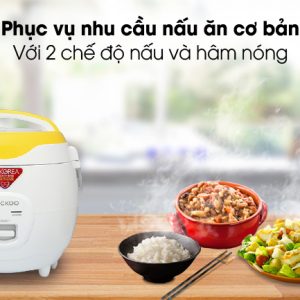 Sản phẩm có thiết kế tay cầm phía trên bằng nhựa tổng hợp không gây nóng và được gài chặt với phần thân nồi có thể nhấc lên hay di chuyển dễ dàng và an toàn. Nồi cơm điện được hoạt động mạnh mẽ với công suất 500W, giúp bạn nấu cơm nhanh chín, hạt cơm nở đều tơi xốp thơm ngon. Khi cơm chín, nồi tự động chuyển sang chế độ hâm tự động, vừa tiện lợi vừa giúp tiết kiệm điện đáng kể.