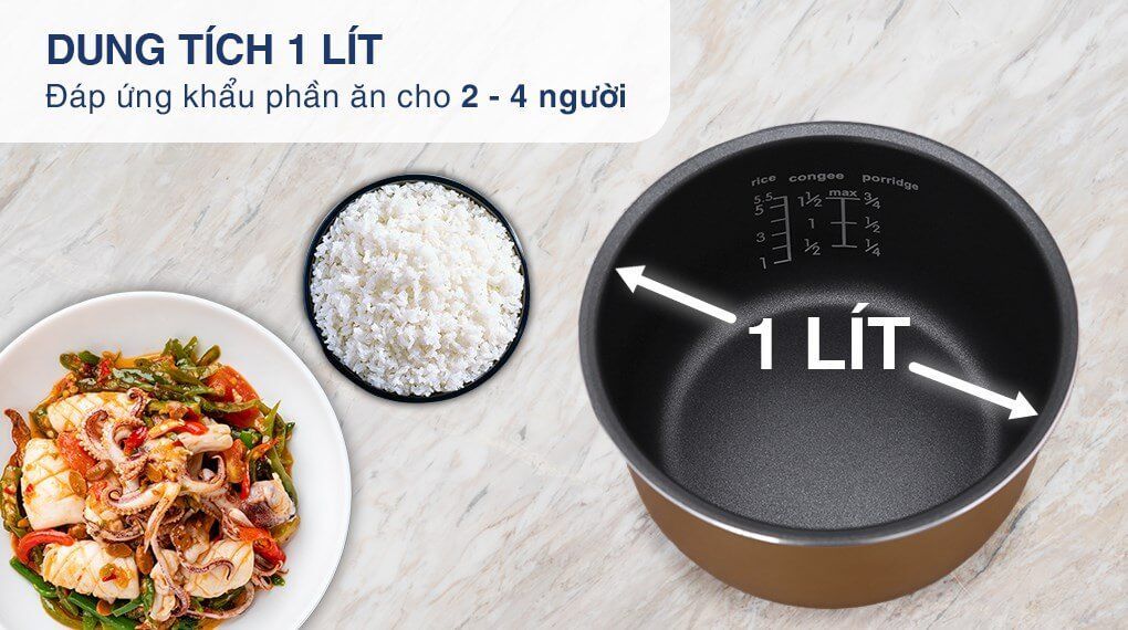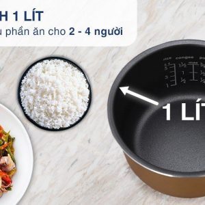 Nồi cơm điện tử E7RC1-550K có dung tích 1 lít sẽ phù hợp với các bạn sinh viên hay gia đình ít người, người muốn giảm cân có nhu cầu nấu ít gạo. Nồi sẽ nấu được 3 – 4 gạo, giúp nấu cơm chín nhanh, không tốn nhiều thời gian.