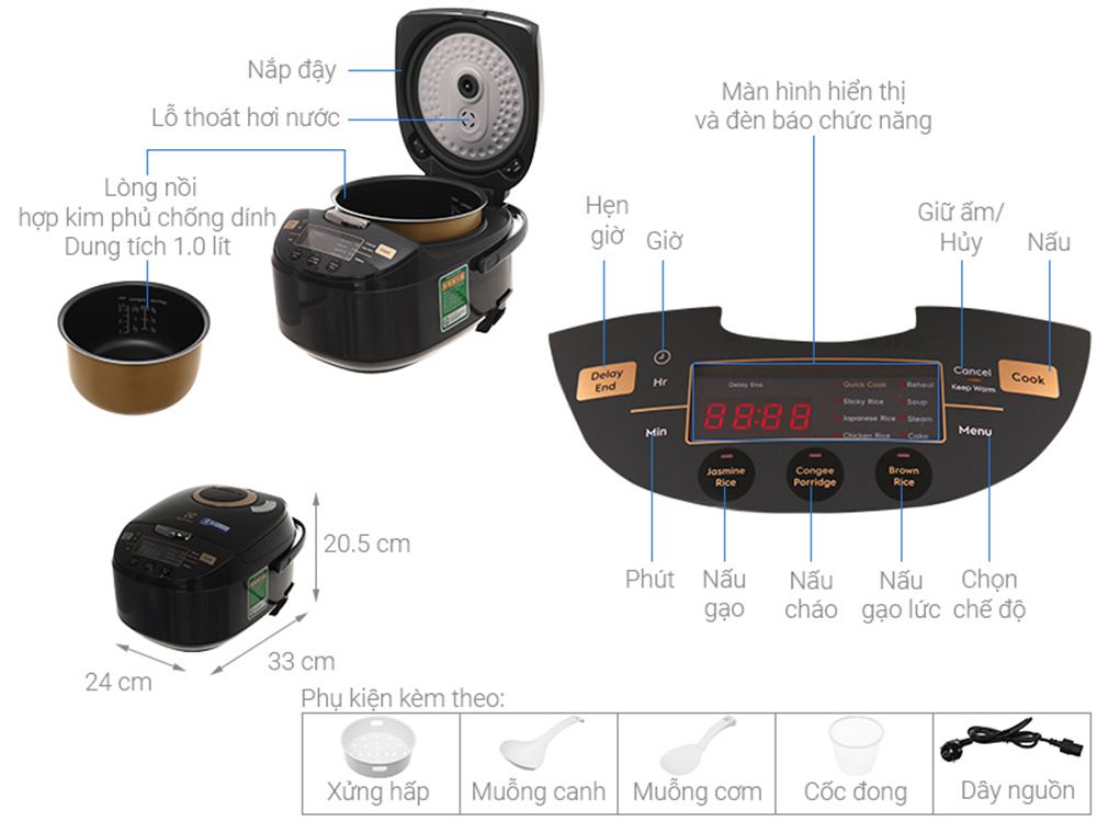 Nồi có chức năng hẹn giờ nấu và giữ ấm lên đến 24 tiếng