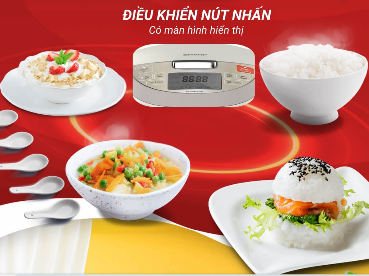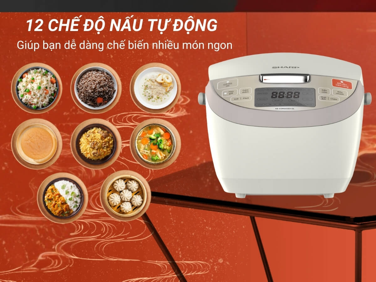 Với chiếc nồi cơm điện tử Sharp KS-COM193EV-GL 1.8 lít này thì người dùng tha hồ chế biến các món ăn ngon ngoài chức năng nấu cơm. Sản phẩm đa dạng chương trình cài đặt sẵn gồm: