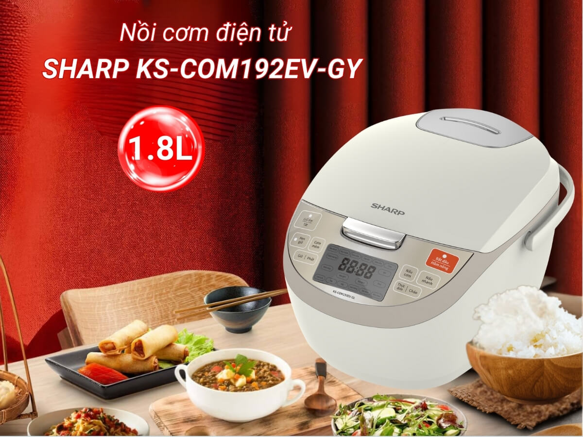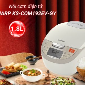 Sharp KS-COM193EV-GL là dòng nồi cơm điện từ đến từ thương hiệu Sharp (Nhật Bản), sản xuất tại Trung Quốc. Sản phẩm có kích thước 39.3 x 29.6 x 24.3cm (Rộng x Sâu x Cao), trọng lượng 3.5kg. Thân nồi bằng nhựa PP, vỏ ngoài màu be trang nhã, tô điểm thêm cho góc bếp gia đình.