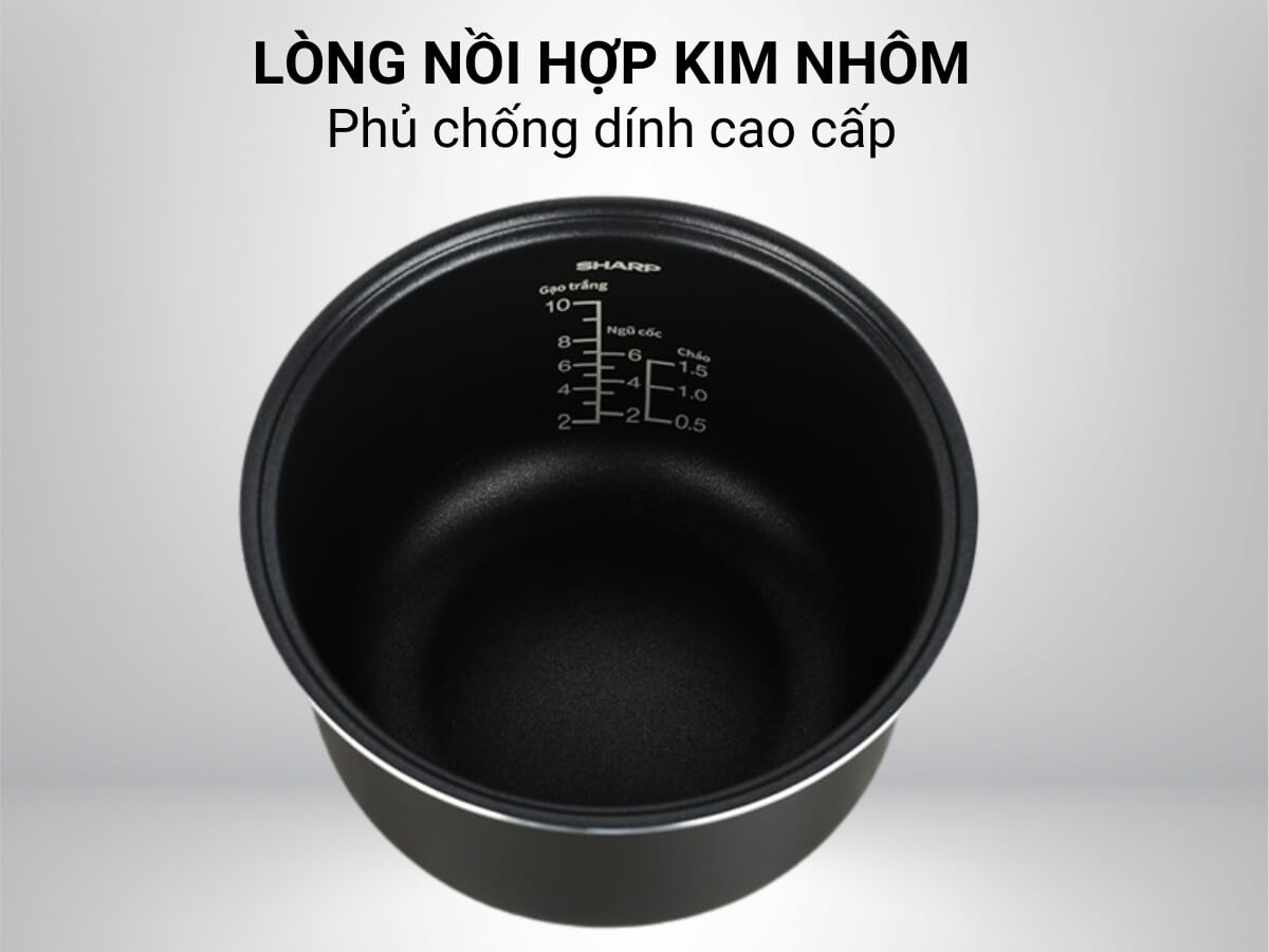 Lòng nồi được làm từ chất liệu hợp kim nhôm bền bỉ, bên ngoài phủ lớp chống dính cao cấp với độ dày 2.2 mm, vừa chắc chắn, vừa dễ lau chùi. Lớp chống dính không chỉ ngăn ngừa tình trạng cơm bám vào nồi, mà còn giúp cơm nấu không bị cháy khét, đảm bảo chất lượng bữa ăn.