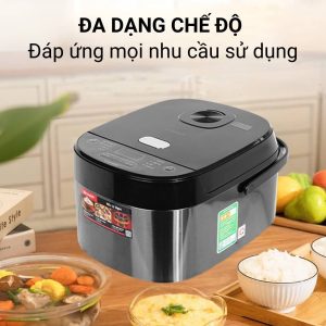 Không chỉ dừng lại ở khả năng nấu cơm, nồi còn tích hợp 8 chế độ khác nhau, bao gồm nấu tiêu chuẩn, nấu nhanh, nấu gạo lứt, nấu cháo, nấu cơm niêu, súp, hấp và luộc trứng. Sự linh hoạt này cho phép người dùng dễ dàng chế biến nhiều món ăn ngon, từ bữa sáng đến bữa tối, đáp ứng đa dạng nhu cầu của gia đình.