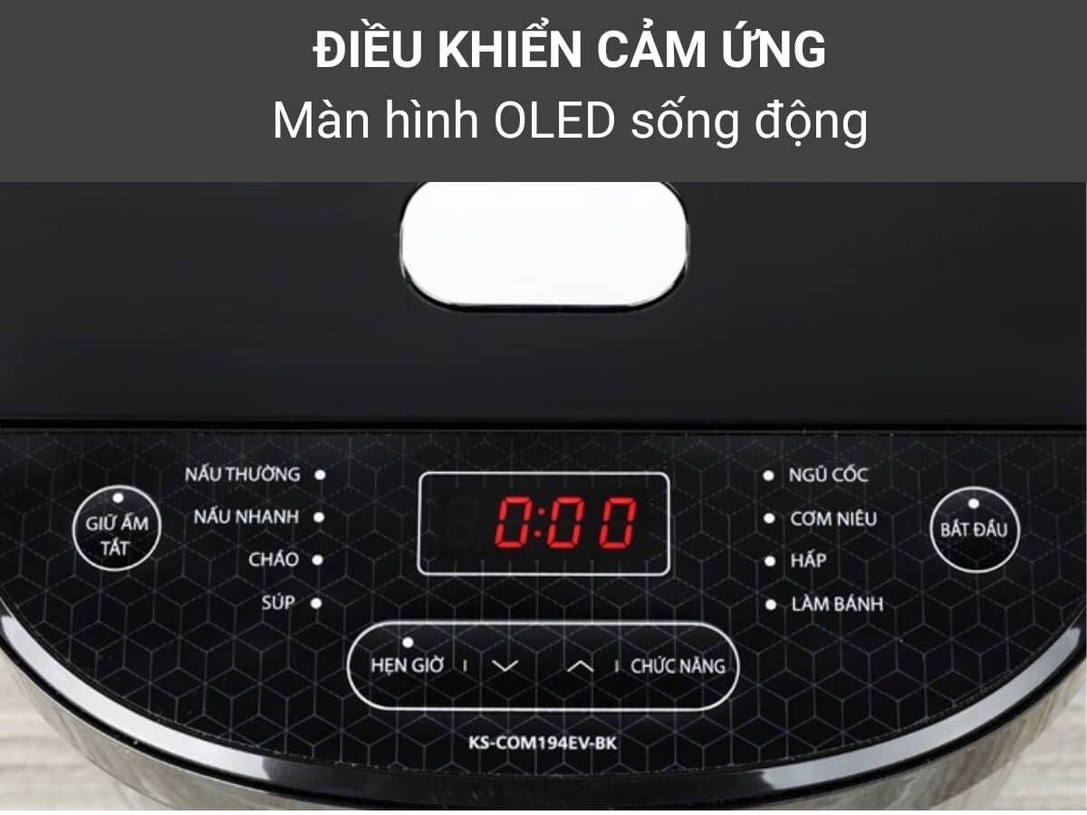 Về công suất vận hành, nồi cơm điện tử Sharp KS-COM194EV-BK được đánh giá cao với công suất nấu 790W, mang đến hiệu suất nấu nướng ấn tượng. Kết hợp với đó là công nghệ nấu 3D hiện đại, với khả năng tỏa nhiệt từ ba phía (nắp, hông và đáy nồi), giúp cơm chín đều, hạt cơm tơi xốp, giữ trọn vị ngọt tự nhiên và dưỡng chất của gạo.