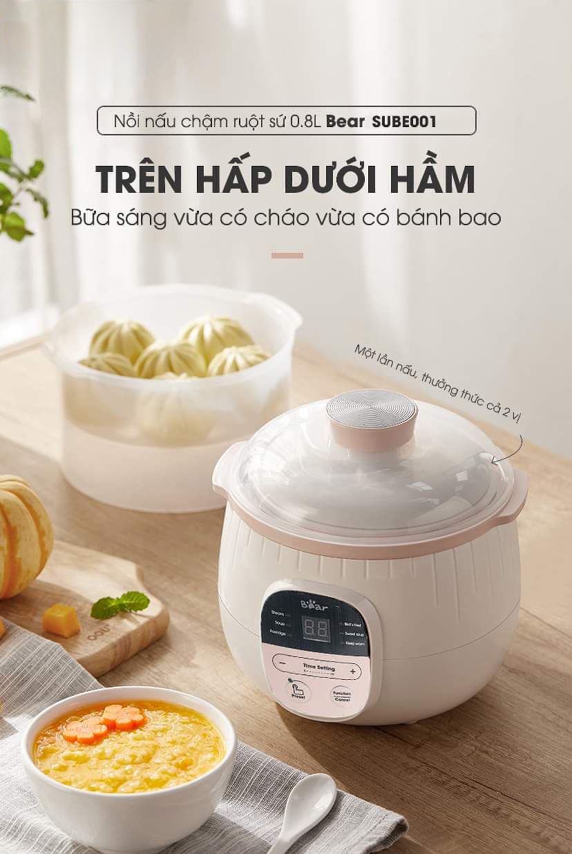 Không chỉ đảm nhiệt tốt việc nấu cháo, nồi nấu chậm Bear SUBE001 còn được trang bị tới 6 chức năng để bạn có thể chế biến nhiều món khác nhau như: hầm canh, nấu chè, hấp, luộc, chưng yến… Chính vì thế mà thiết bị này không chỉ phục vụ bữa ăn dặm cho bé mà còn phù hợp với người già, những đối tượng muốn tìm tới một giải pháp tiện lợi để bữa ăn hằng ngày thêm chất lượng.