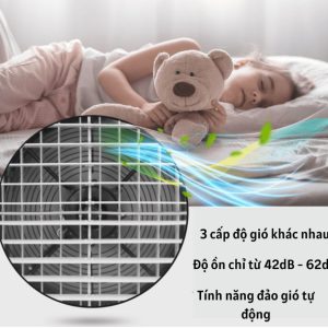 Sản phẩm được trang bị 4 tốc độ gió, từ nhẹ nhàng đến mạnh mẽ, phù hợp với mọi nhu cầu sử dụng. Đặc biệt, chế độ gió ban đêm hoạt động với độ ồn thấp (chỉ 42dB – 62dB), giúp bạn tận hưởng giấc ngủ trọn vẹn mà không bị làm phiền.