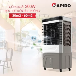 Công suất của quạt lên tới 200W lưu lượng gió 9000m3/h thích hợp cho phòng có diện tích rộng từ 30-60m2 hoặc không gian rộng lớn như quán ăn, quán cafe, nhà hàng,…