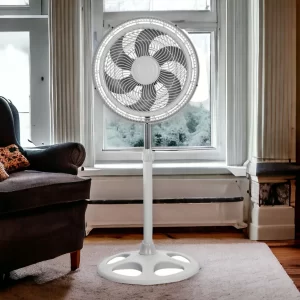 Chân đế vô cùng vững chắc, cân bằng trên mặt phẳng tránh bị nghiêng đổ hay rung khi hoạt động. Trong quá trình vận hành, quạt hoạt động êm ái không tạo tiếng ồn lớn gây ảnh hưởng đến bạn và các thành viên trong gia đình. Lồng quạt được đan khít và chắc chắn, rất an toàn khi bạn chạm vào ở cự li gần.