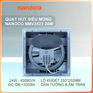 Quạt hút gió siêu mỏng Nanoco NMV2523 (250mm x 250mm) là thiết bị thông gió được thiết kế nhằm đáp ứng nhu cầu lưu thông không khí trong các không gian gia đình và văn phòng quy mô nhỏ đến vừa. Sản phẩm sở hữu công suất 24W, lưu lượng gió 400 m³/h, độ ồn dưới 50 dBA và đường kính ống dẫn 175mm, phù hợp cho các khu vực cần thông gió tương đối mạnh nhưng vẫn đảm bảo sự yên tĩnh.