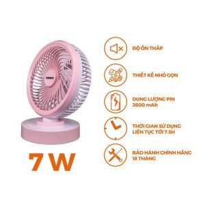 Quạt tích điện Nanoco NRF6213P tích hợp pin dung lượng 3600mAh, thiết kế nhỏ gọn, trọng lượng nhẹ, dễ dàng di chuyển, sử dụng bất cứ nơi nào. 4 mức độ gió tuỳ chỉnh chỉ với 1 nút nhấn trên quạt, có thể xoay để làm mát không gian xung quanh.