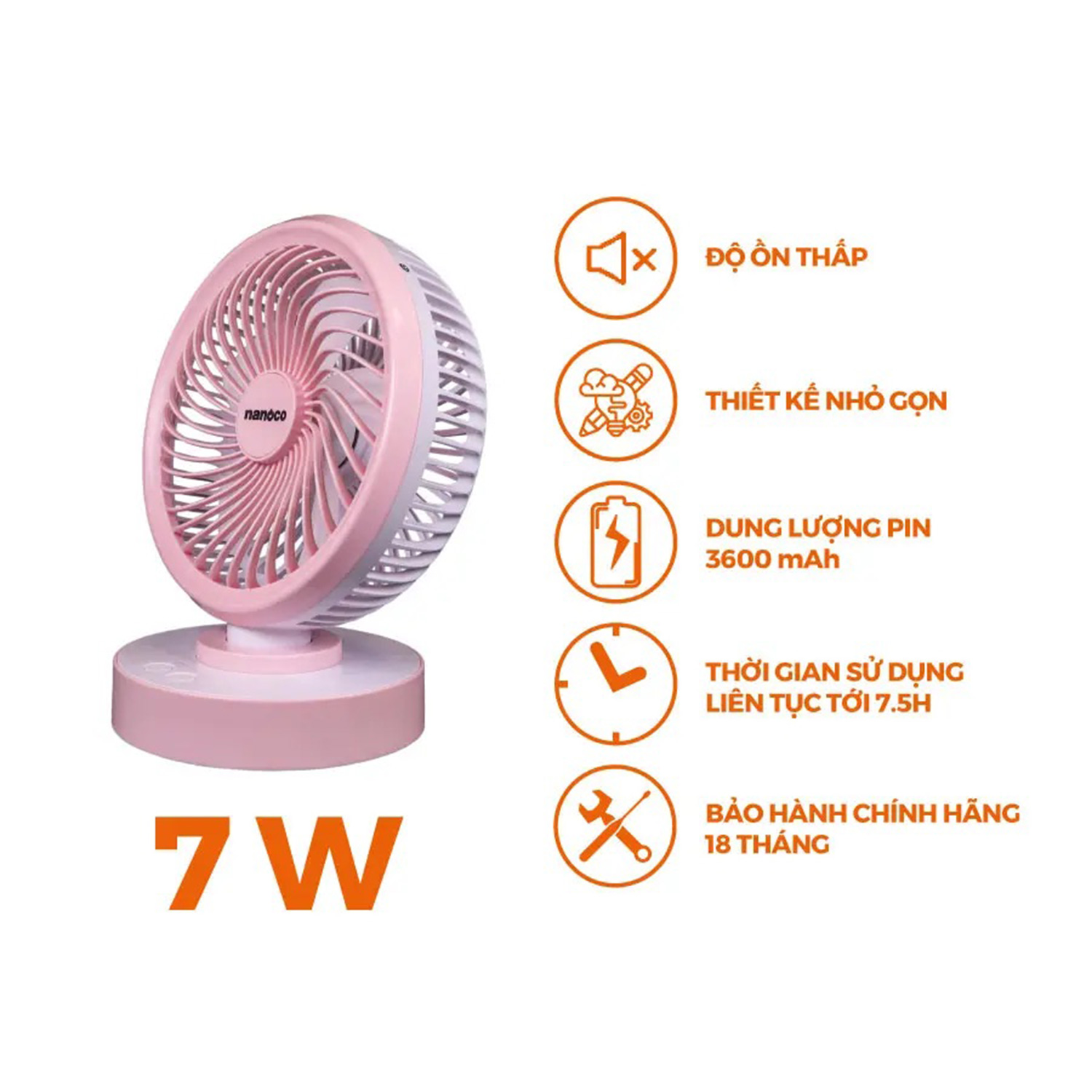 • Công suất: 7W – Pin: 3,7V – 3.600mAh