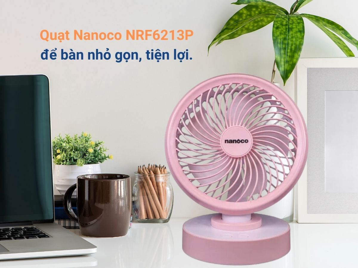 Quạt tích điện Nanoco NRF6213P thiết kế nhỏ gọn, tiện lợi