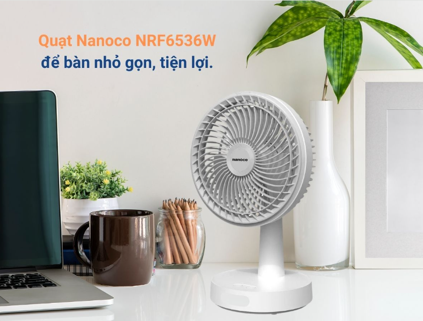 Với kiểu dáng thanh lịch và lớp vỏ nhẵn mịn, quạt sạc điện Nanoco NRF6536W không chỉ hữu ích mà còn mang tính thẩm mỹ cao, phù hợp với mọi không gian. Màu trắng hiện đại giúp sản phẩm dễ dàng hòa mình vào các không gian nội thất khác nhau.